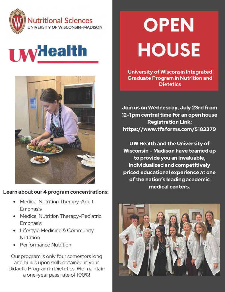 Join the University of Wisconsin’s Integrated Graduate Program in Nutrition and Dietetics for a Virtual Open House Webinar