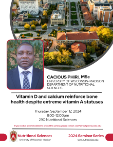 Join us this Thursday, September 12th from 11-12pm for Cacious Phiri’s seminar titled “Vitamin D and calcium reinforce bone health despite extreme vitamin A statuses” #seminarseries